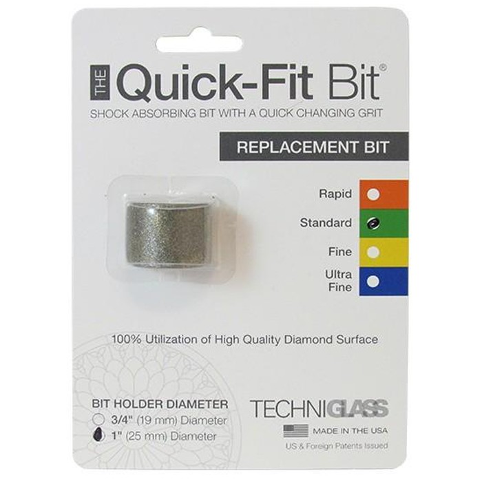 The quick fit bit system is unlike any other bit in stained glass! It is designed to be quick to change without the use of a hex wrench