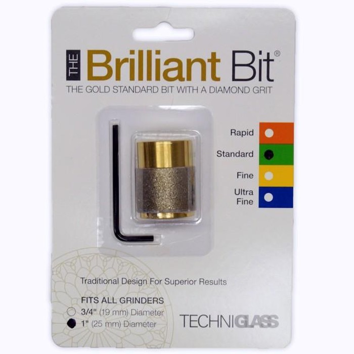 Brilliant Bits are made of a solid brass body using a proprietary Diamond Bonded Technique that promotes extra long life and resists corrosion. Bonded Diamonds easily last twice as long as electroplated diamond steel grinder bits. These are a must-have in any stained glass studio!