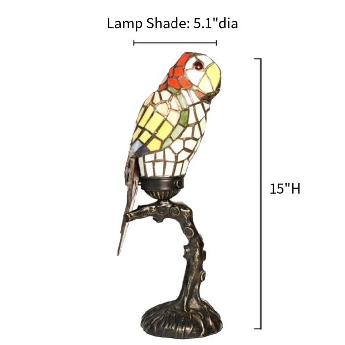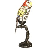 83189-Red Parrot Stained Glass Lamp with Satin Bronze Finish Base